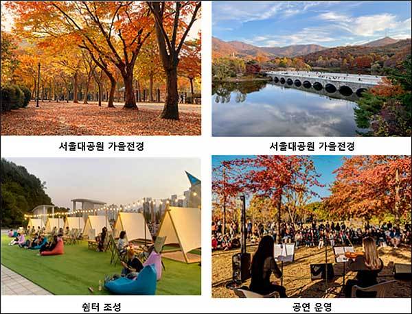 낙엽잎 등을 활용한 체험프로그램 10종 및 어린이 친구들을 위한 친환경 무동력 나무놀이터도 함께 운영할 예정이다. 특설무대에서는 어쿠스틱, 재즈, 마술 퍼포먼스 등 가을의 정취를 느낄 수 있는 다채로운 무대가 펼쳐진다.