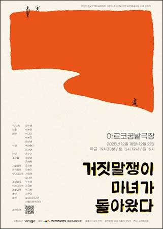 [우리문화신문=이나미 기자] 현시대 가족의 입장을 독특하게 다룬 연극 ‘거짓말쟁이 마녀가 돌아왔다’가 12월 18일(목)~21일(일) 모두 5회 아르코꿈밭극장에서 한국문화예술위원회와 아르코꿈밭극장 후원으로 열린다. (목ㆍ금 19시 30분, 토 15시ㆍ19시, 일 15시)