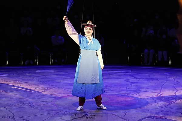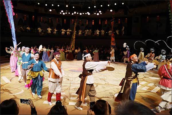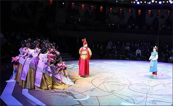또 무대 뒤에는 객석 이층에 반주를 맡은 국악관현악단이 자리 잡고, 극의 시작부터 끝까지 화려한 연주를 해냈다. 또 연주단은 연주 중간중간에 일어서서 객석과 함께 손뼉을 치며 함께해 추임새로 하나 되는 모습을 보여 주었다.
