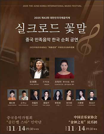 [우리문화신문=이나미 기자] 지난 11월 14일(금)과 15일(토), ‘제42회 대한민국국제음악제’의 하나로 중국 민족음악 한국 순회 공연 ‘실크로드 꽃말(丝路花语)’이 대한민국예술인센터 파코아트홀과 배화여자대학교에서 성황리에 끝났다. 특히, 14일 공연은 전석 매진을 기록하며 높은 관심을 입증했다.
