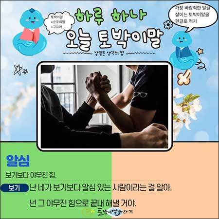 빈 깡통 같은 소리가 누리를 채우는 듯해도, 마침내 이 누리를 떠받치는 건 보이지 않는 곳에서 말없이 제 몫을 다하는 여러분의 '알심'입니다. 오늘 하루, 여러분의 마음속에 단단하고 따뜻한 알맹이 하나 챙겨보시는 건 어떨까요?