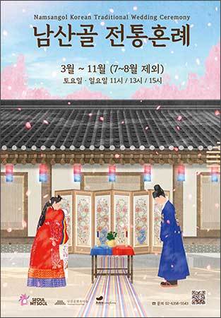 상담 예약은 남산골한옥마을 누리집(www.hanokmaeul.co.kr) 내 전통혼례 안내 페이지를 통해 신청할 수 있으며, 기타 문의는 남산골한옥마을 운영사무실(02-6358-5543)로 하면 된다.