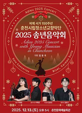 [우리문화신문=이나미 기자] 춘천시립청소년교향악단(지휘자 임동국)이 오는 12월 13일(토) 저녁 5시, 춘천문화예술회관에서 올해 마지막 일정으로 2025 송년음악회를 연다.