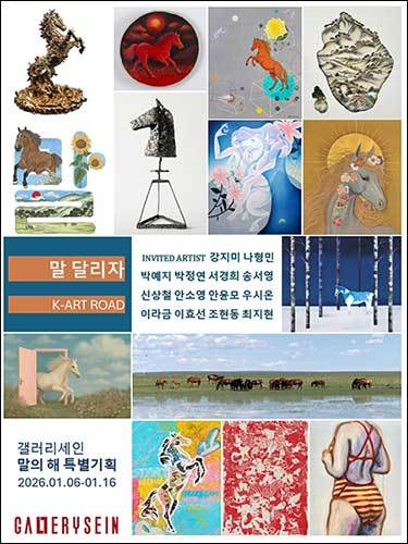 [우리문화신문=이한영 기자] 1월 6일부터 오는 1월 16일까지 서울 서울 강남구 학동로 503. ‘갤러리세인’에서는 2026 말의 해 특별전 <말 달리자 K-Art>가 열린다.