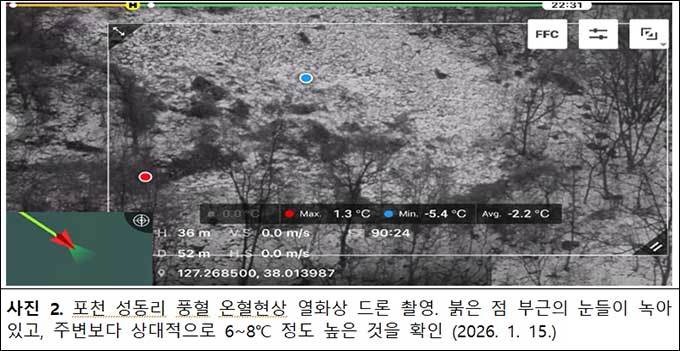 [우리문화신문=이한영 기자] 산림청 국립수목원(원장 임영석)은 최근 경북 의성 빙계계곡에서 겨울철에도 주변보다 높은 온도를 유지하는 풍혈지의 ‘온혈현상’이 확인됨에 따라, 국내 풍혈지를 대상으로 온열 특성 조사를 본격적으로 추진한다.