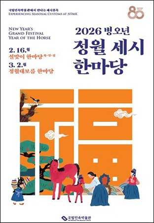[우리문화신문=정석현 기자] 국립민속박물관(관장 장상훈)은 우리 겨레 고유의 세시인 설을 맞아 2월 16일(월) ‘2026년 설맞이 한마당 〈복-잇-설*>’을 연다. 이번 행사는 나라 안팎 관람객과 전 연령층이 함께 참여할 수 있는 현장 체험형 프로그램으로 구성하여, 설의 전통적 의미를 현대적으로 재해석해 ‘나’에서 ‘우리’, ‘이웃’으로 복을 나누는 경험을 할 수 있도록 기획했다.