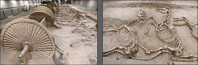 ○ 1호 갱 : 춘추시대의 말 제사 터로 길이 32m, 너비 5m에 전차 10대와 말 32마리가 매장되어 있다. 이 가운데 전차 6대는 말 4마리씩, 4대는 말 2마리씩 끄는 형태로 작은 전차는 전투용, 큰 전차는 물자 운반용으로 사용하였다. 말의 뼈가 잘 보존돼 있으며, 머리와 목에 있는 장식이 매우 정교하고 다양하여 인상적이었다.