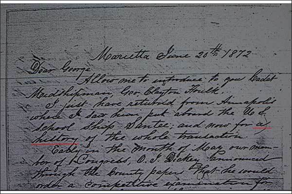 나는 방금 아나폴리스에서 돌아왔네. 거기에서 녀석이 학교용 군함 산텍호(US S School Ship Santec)에 승선하는 것을 보았네. 이제 그 자초지종의 역사를 기술하려 하네.