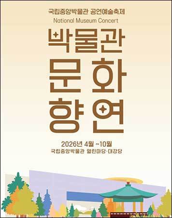 [우리문화신문=이한영 기자] 국립중앙박물관(관장 유홍준)은 국립박물관문화재단(사장 정용석)과 함께 국립중앙박물관 공연예술축제 <2026년 박물관문화향연>을 4월부터 11월까지 서울 용산 국립중앙박물관, 전국 11곳 국립박물관에서 연다. <박물관문화향연>은 국립중앙박물관이 2014년부터 해마다 운영해 온 관람객 대상 무료 공연으로, 올해도 중앙박물관과 지역 국립박물관에서 다양한 장르의 공연 프로그램을 통해 국민에게 폭넓은 문화 향유 기회를 제공한다.