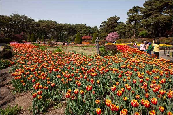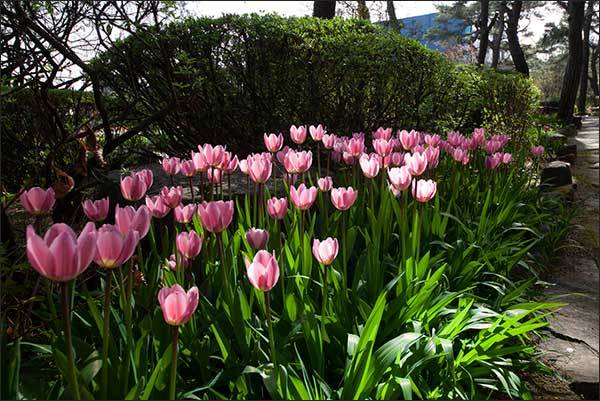 지금은 노랑, 분홍, 빨강 등 원색의 튤립들이 활짝 피어 화사한 분위기를 연출하고 있다. 튤립에 이어 필 꽃은 철쭉으로 꽃봉오리 진 모습이 머지 않아 그 화사함을 더해줄 듯하다.