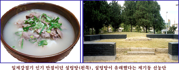 “시험으로 먹어 본다는 것이 한그릇 두그릇 먹기 시작을 하면 누구나 자미를 드려서 집에 갈 로자 돈이나 자긔 마누라의 치마감 사줄 돈이라도 안이 사먹고는 견듸지 못할 것이다. 갑이 눅은 것도 눅은 것이어니와 맛으로던지 영양으로던지 상당한 가치가 잇는 것이다. 自來로 서울의 폐병(肺病)쟁이와 중병 알코 난 사람들이 이것을 먹고 소복(蘇復, 원기 회복)하는 것은 물론이고 근래(近來)에 소위 신식결혼을 하얏다는 하이카라 청년들도 이 설넝탕이 안이면 조석(朝夕, 아침저녁)을 굴물 지경이다.” 위는 일제강점기의 잡지 ≪별건곤≫ 제23호(1929년 발행) “경성명물집(京城名物集)”에 나오는 설렁탕이야기입니다.