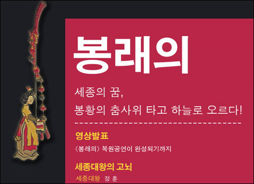 이들의 연구는 이 공연으로 끝나는 것이 아니고, 세종대왕의 귀중한 업적들에 대한 완전 재현에 이르기까지 중간단계로 자리매김이 될 것이다. 깊어가는 가을 세종대왕의 큰 업적 가운데 하나인 <봉래의>에 눈뜨러 가볼까?