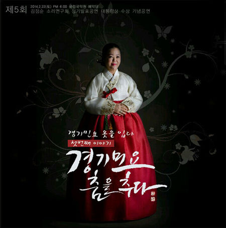 [그린경제/얼레빗 = 정석현 기자] 2월 22일 오후 6시 국립국악원 예악당에서 제5회 김점순소리연구회 발표공연 경기민요 옷을 입다 - 첫 번째 이야기 “경기민요 춤을추다”공연이 열린다. 경기민요와 춤이 한 무대에서 어우러지는 “국악의 콜라보레이션” 이라는 주제를 가지고 총 3편으로 기획되어진 공연 중 첫 번째 무대로 나이 지긋한 어르신들만 보는 국악공연에서 젊은 세대도 함께 즐길 수 있는 국악공연을 만들고자 노력 하는 김점순소리연구회의 첫번째 기획 공연이다.