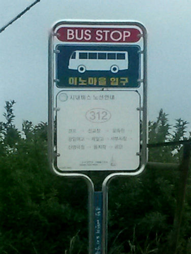 강릉에서 사천진해수욕장으로 가는 아주 작은 시골길에 서 있는 버스정류장. 사천진해수욕장으로 가는 큰길이 따로 있어서 이 길을 다니는 차나 사람은 거의 없는 곳입니다. 이곳에 덩그마니 BUS STOP라고 써 있는 버스정류장 안내판! 이 작은 시골길에 어쩌다 올지 모르는 서양인을 위한 표지? 천지개벽을 해도 이곳을 서양인이 지나다닐 일이 없는 아주 좁고 작은 시골길임에도 이런 영어표기가 버젓이 서 있군요.서양인을 위한 것이라면 버스그림으로도 충분하지 않을까요?