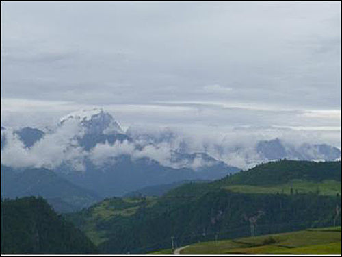 | ▲ 샹그릴라 올라가는 길에서 잠시 내려 옥룡설산을 바라봄 | ||