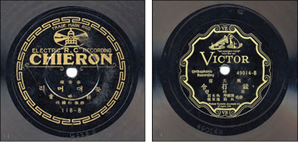 미국 콜럼비아나 빅타 레코드에서 발매한 대한제국 시절의 음반은 한쪽 면만 녹음되어 있어서 ‘쪽판’이라고 하며, 녹음기사가 직접 외국의 현지까지 가서 녹음하였기 때문에 이런 것을 ‘출장녹음’이라고 하였습니다. 일제강점기 가장 인기 있었던 음반은 역시 임방울 명창의 쑥대머리로 무려 120만장이나 팔렸다고 합니다. 가요로는 이바노비치(Ivanovich)의 ‘다뉴브 강 물결’이란 기악곡을 번안한 윤심덕의 ‘사의 찬미’가 인기 있었고, 월남 이상재 선생의 연설 ‘조선청년에게’도 나왔지만 일제는 이를 압수하여 듣지 못하게 했다고 하지요.