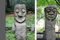 [우리문화신문=최우성 기자] 전남 나주시 다도면 불회사 입구에는 투박하고 길쭉한 자연석을 거칠게 다듬어 사람 모습으로 새겨진 벅수가 서있다. 불회사는 백제시대 동진으로부터 온 마라난타(서기 384년 백제입국) 스님이 세운 절이라고 전하는 유서깊은 절인데, 산길을 돌아서 오르는 절 입구에 귀한 벅수가 세워져 있었다. 이 벅수는 경사져 오르는 길 양 옆에 서로 마주보며 서있는데, 마치 천진난만한 어린아이가 제멋대로 흙으로 빗은 듯 투박하면서도 정다운 모습으로, 조선시대 천진불을 조각하듯 욕심없는 불모조각가가 한국인의 아름다움에 대한 철학이 그대로 구현된 것이다. 불회사의 벅수는 높이 1.5m정도로 장승처럼 높고 크지도 험상굿지도 않고 정답고 아담하다. 벅수를 2기로 양 옆에 새긴 것은 벅수도 남녀로 쌍을 이루게 한 것이며, 남자는 긴 수염과 상투를 튼 모습으로 표현하였고, 여자는 부드러운 느낌의 미소가 보이도록 표현하였다. 남자 벅수의 몸에는 '하원당장군' 여자 벅수의 몸에는 주장군이라고 새겨져 있다. 절 입구의 벅수는 불교의 수호신인 사천왕이나 금강역사와는 또 다른 의미의 한국인의 토속신으로 또 다른 의미의 신성구역으로 들어가는 경계를 표현한 것으로 본다. 요