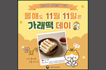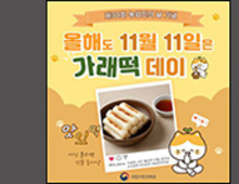 [우리문화신문=성제훈 기자] 농촌진흥청(청장 이승돈)은 11월 4일부터 11일까지 ‘올해도 11월 11일은 가래떡데이!’ 온라인 행사를 진행한다. 이번 행사는 11월 11일 ‘가래떡데이’를 맞아 우리 쌀의 소중함과 우수성을 알리고 소비를 촉진하기 위해 마련됐다. 행사 기간에 가래떡을 비롯한 다양한 떡을 먹거나 요리하는 모습을 사진으로 찍어 공개된 누리소통망(SNS)에 올리고 행사 공지에 ‘참여 완료’ 댓글을 작성하면, 40명을 추첨해 식냥이* 문화상품(굿즈), 우리 품종 쌀 꾸러미 등을 준다. 가래떡데이 온라인 행사 내용은 국립식량과학원 누리집(www.nics.go.kr)*과 기관 누리소통망(SNS)에서 확인할 수 있다. *국립식량과학원의 우수성과를 홍보하고 농업에 대한 국민의 이해와 관심을 높이기 위해 제작된 기관 특징물(캐릭터) *‘국립식량과학원 누리집’ 접속-‘알림ㆍ홍보’-‘홍보ㆍ보도’-‘보도자료’ 정부는 농업인의 긍지와 자부심을 북돋우기 위해 1996년 11월 11일을 ‘농업인의 날’로 제정했다. 젊은 층 사이에서 이날을 막대 과자 주고받는 날로 여기는 인식이 확대되자, 2006년에는 가래떡을 먹는 가래떡데이로 지정해 쌀 소비 촉진을 장려하고 있다.