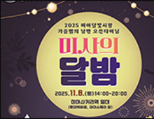 [우리문화신문=이한영 기자] 서울 강북구(구청장 이순희)는 11월 8일(토) 낮 2시부터 밤 8시까지 미아사거리역 일대(롯데백화점, 와이스퀘어 앞)에서 '2025 미아달빛시장 가을밤의 낭만 열린식사(오픈다이닝) '미사의 달밤''을 연다. 이번 행사는 강북구 골목형 상점가 대표 상점들이 참여해 각자의 개성이 담긴 지역(로컬) 음식들을 선보이며 지역 주민과 함께 어우러지는 소통의 장으로 꾸며진다. 행사 현장에는 골목상권 지역 음식뿐 아니라 공예 만물시장(플리마켓)과 체험, LED 풍선 만들기 등의 다양한 프로그램과 반딧불 디스플레이, 대형 곰돌이 사진마당 등이 마련돼 가을밤의 정취를 한껏 돋운다. 축제 분위기를 끌어올릴 거리 공연도 펼쳐진다. 포크, 어쿠스틱 음악부터 마술, 뮤지컬 음악까지 다양한 장르의 버스킹 공연과 거리 노래방이 방문객들에게 듣는 즐거움을 더하고, 달빛 아래 지역 음식을 즐기며 쉼과 여유를 만끽할 수 있는 특별한 시간을 선사할 예정이다. 이순희 강북구청장은 "이번 행사가 주민과 상인들이 함께 어우러지는 화합의 장이 되기를 바란다"라며 "앞으로도 활기 넘치는 지역 상권을 만들기 위해 최선을 다하겠다"라고 밝혔다.