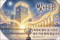 [우리문화신문=이창수 기자] 그림 속, 깊푸른 밤하늘 아래 환하게 불을 밝힌 건물이 도심의 강물 위로 눈부신 자태를 뽐내고 있네요. 건물에서 뿜어져 나오는 황금빛 줄기들이 하늘로 솟아오르는 화살표와 동전들을 감싸 안으며 마치 축제 같은 풍경을 만들어냅니다. 강물에 비친 불빛은 은은한 윤슬이 되어 흐르고, 정성껏 닦아놓은 우승컵은 그 모든 수고를 대변하듯 당당하게 서 있습니다. 어둠을 뚫고 솟아오른 이 찬란한 빛들을 보고 있으면, 긴 시간 고요히 내실을 다져온 이들만이 누릴 수 있는 기쁨이 전해져 와 우리 마음도 함께 환해지는 듯합니다. 존재의 값어치가 뚜렷이 드러나는 빛나다 최근 우리 반도체 기업이 사상 최대의 실적을 거두며 세계 시장에서 그 존재감을 크게 드러냈다는 기분 좋은 기별을 들었습니다. 오랜 시간 기술을 축적하고 철저히 준비해온 노력이 그림 속 황금빛 줄기처럼 뚜렷한 성과로 이어진 기별을 보며, 이 토박이말이 가장 먼저 떠올랐습니다. 오늘 우리가 함께 나눌 말은 '빛나다'입니다. 《표준국어대사전》에서는 '빛나다'를 '빛이 환하게 비치다', '빛이 반사되어 반짝거리거나 윤이 나다', '영광스럽고 훌륭하여 돋보이다', '눈이 맑은 빛을 띠다'의 네 가
