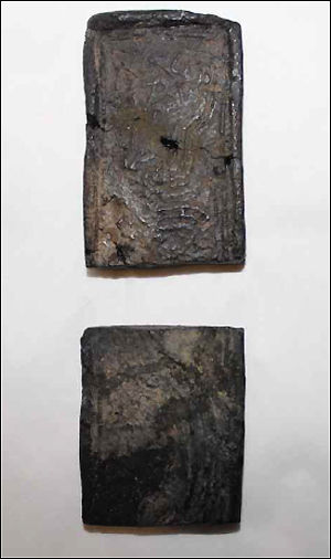 ▲ “‘단산오옥’이란 글씨가 새겨진 청주 명암동 출토 고려 먹“ (뒷면)
