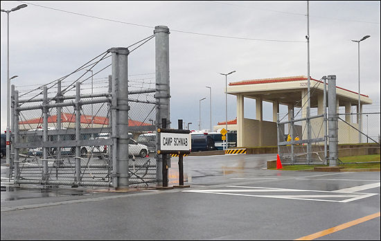 | ▲ 오키나와 한 미군기지, 미군기지 뒤에는 새롭게 이전할 미군기지 대상지인 헤노꼬가 있다. | ||