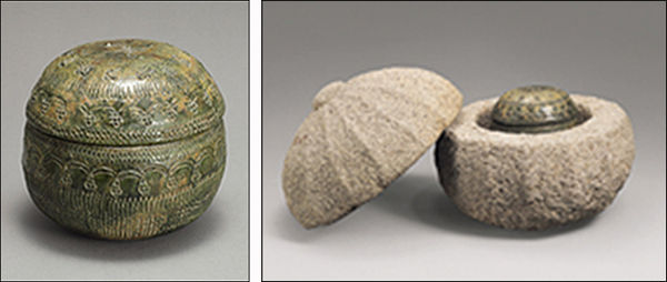 | ▲ 돌함과 뼈단지藏骨容器], 통일신라 9세기, 돌함 높이 43.0㎝, 뼈단지 높이 16.4㎝, 국보125호 | ||