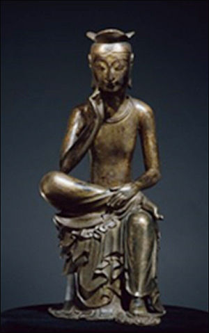 | ▲ 금동반가사유상(金銅半跏思惟像), 삼국 7세기 전반, 높이 93.5㎝, 국보83호 | ||