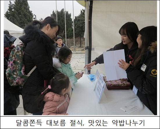 이번 정월대보름에는 박물관을 찾는 관람객들을 대상으로 특별한 프로그램을 준비하였다. 하루에 3번 정해진 시간에 부럼과 약밥, 복쌈을 선착순 100명에게 무료로 나누어 주면서 정월대보름의 의미를 새겨볼 수 있도록 하였다. 또한 사전 예약한 10명 이상의 단체가 방문하거나 할아버지, 할머니와 손자, 손녀가 함께 새끼줄 꼬기 체험에 참여할 경우에는 부럼, 약밥, 복쌈 등으로 구성된 정월대보름 행복꾸러미를 무료로 제공한다.