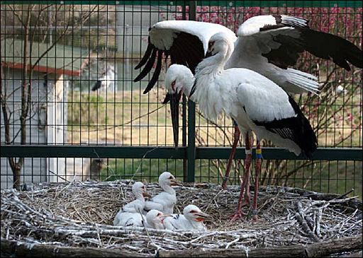 3월 21일 광시면 시목리 둥지탑에서 태어난 새끼 황새 5마리의 부모(수컷 생황, 암컷 국황)는 스스로 짝을 이뤄 2년째 성공적으로 번식한 것으로, 이번에는 알 5개를 낳아 모두 부화에 성공했다.