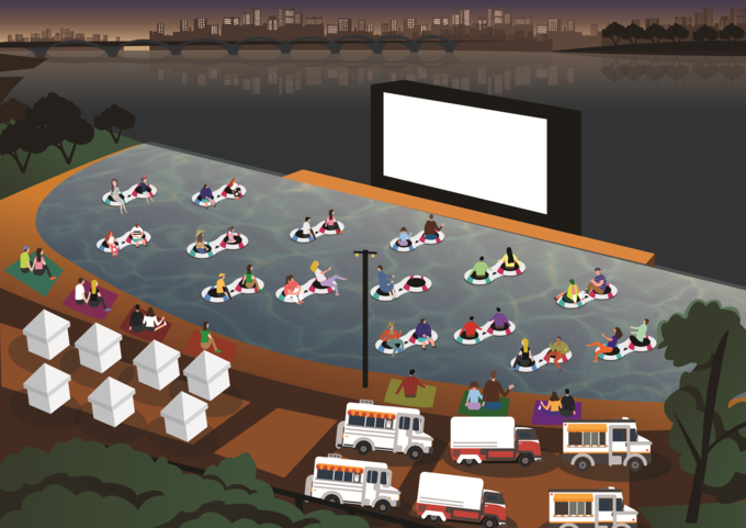 <시네마 퐁당>은 물속에서 영화를 즐기는 이색 영화제로 올해 첫 선을 보인다. 8.3.(금)~8.17.(금) 3주간 매주 금요일 20시~23시까지 난지한강공원 물놀이장에서 운영한다. 드라마․로맨틱코미디․공포 등 다양한 장르의 영화가 상영될 예정으로 불금의 열대야를 잊게 해 줄 이색적인 프로그램이다.