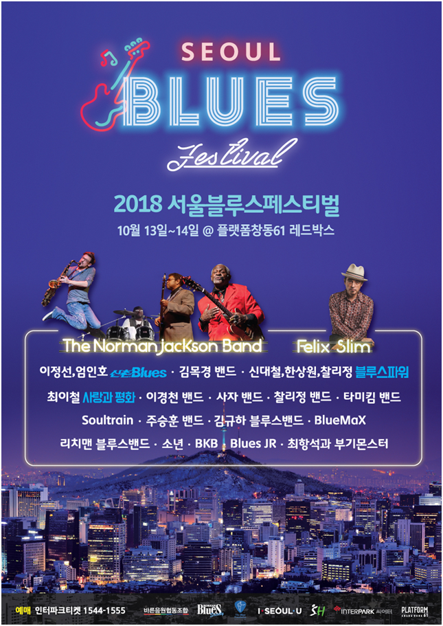서울시는 국내 최대 규모이자 역대 최고의 라인업을 자랑하는 <2018 서울 블루스 페스티벌>을 10월13일~14일 양일간 플랫폼창동61에서 개최한다고 밝히고, 출연 뮤지션을 공개했다.