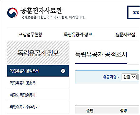 여기서 하나 문제를 제기하고자한다. 국가보훈처는 현재 누리집(홈페이지)에 ‘독립유공자정보’를 다루는 꼭지(방)를 두고 있는데 <독립유공자공적조서>, <독립유공자공훈록>, <이달의독립운동가>, <독립유공자후손찾기> 4개가 그것이다. 이 가운데 일반인에게 가장 큰 도움을 주는 것이 <독립유공자공훈록>이다. 기자의 경우도 이것을 자주 이용한다. 문제는 서훈 받은 독립유공자를 곧바로 이곳에 올리지 않고 있다는데 있다. 왜인가?