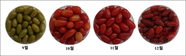 ‘항비만 활성’을 평가한 실험(in vitro) 결과, 9월 수확한 열매(미숙과)는 10~12월에 수확한 열매보다 세포의 지방 생성 억제 효과가 적게는 2배에서 많게는 3배까지 높았다. 지방 생성과 관련된 단백질 발현을 억제하는 효과도 9월 수확한 열매에서 가장 높게 나타났다.