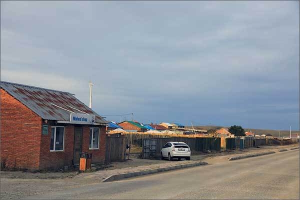 에르덴차강 솜 입구에 풍력발전기 한 대가 서 있어 멀리서도 잘 보인다. 마을에 들어가 슈퍼마켓에서 작은 사과 10여 개와 건포도, 물, 과자를 사고 주유소에서 기름을 채우고 실링복드(산) 방면으로 출발하였다. (기름 1리터에 3,110투그릭-한화 1,240원과 2,550투그릭-한화 1,20원으로 두메로 갈수록 기름값이 비싸서 사람이 살기가 더 어렵다)