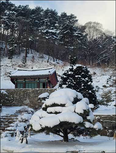 혼자서가 아닌, 그곳에 위패를 모신 많은 가족들과 함께 돌아가신 이들의 명복을 빌고 술잔을 올린다. 그리고 공양간에서 한그릇의 떡국을 맛나게 먹고 절을 나서면서 수정 고드름이 탐스럽게 매달려 있는 전각들을 바라다 본다. 꽤 오래간만에 만난 고드름, 한겨울 추위를 고스란히 머금은 고드름이 녹아 내릴 봄은 먼듯하다. 하지만 처마밑 고드름도 머지 않아 찾아올 봄바람에 스르르 녹아내리지 않을까? 그 봄을 기다리며 절문을 나섰다.