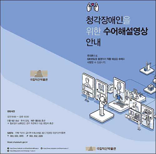[우리문화신문=이한영 기자] 국립익산박물관(관장 김울림)은 전시를 더욱 쉽게 이해할 수 있도록 ‘수어 전시해설 영상’을 제공한다. 이번 수어 전시해설 영상은 문화체육관광부의‘2024년 전시정보 수어영상 제작 지원사업’에 뽑힘에 따라 제작되었다.