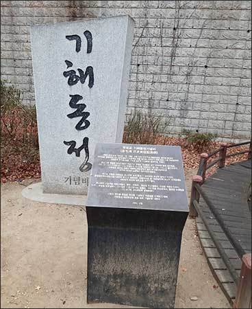 이어서 우리는 3번 출구 쪽으로 내려와 기해동정 기념비 앞에서 사진을 찍었다. 이 기념비는 세종 1년(1419년), 이종무가 이끄는 제3차 대마도 정벌 출정식을 기념하여 2020년에 세워진 것이다.