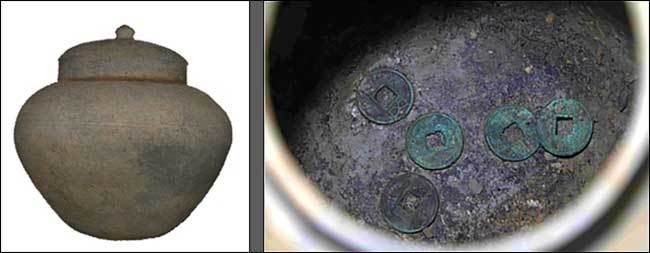 지진구로 쓴 항아리는 직각형태로 목이 짧으며 그 위에 둥근 구슬모양의 손잡이가 달린 뚜껑이 덮여 있다. 내부에서는 오수전(五銖錢): 무게가 5수(銖)인 중국 동전으로, B.C.118~A.D.620 사용) 5점이 확인되었다. 보통 백제시대의 지진구는 성토된 대지나 축대, 마당터와 같은 전체 대지의 안정을 기원하는 공헌의례나 개별 건물지에 대한 의례 행위에 쓰인 것으로 확인됐는데, 이번에 확인된 지진구는 대지조성층이 아닌 생토를 굴착해 조성되었고 주변에 건물은 빙고만이 확인되고 있어 빙고의 성공적인 축조를 기원하기 위해 봉안된 것으로 해석된다.