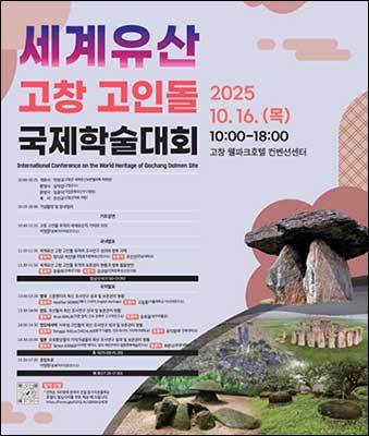 [우리문화신문=한성훈 기자]  국가유산청 국립문화유산연구원 국립완주문화유산연구소(소장 이규훈)는 고창군(군수 심덕섭)과 함께 10월 16일 아침 10시 고창 웰파크호텔 컨벤션센터(전북 고창군)에서 「세계유산 고창 고인돌의 가치 재조명과 향후 과제」를 주제로 국제학술대회를 연다.