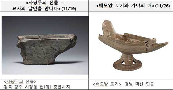 이와 함께 기존의 상설전시관에서도 다채로운 해설이 진행된다. 백제실에서는 <백제의 건축장식>을 주제로 치미와 기와 등에 나타난 장식성과 아름다움을 소개한다. 가야실에서는 <배모양토기와 가야의 배>를 통해 가야의 해양문화를 살펴볼 수 있다. 통일신라실에서는 <사냥무늬 전돌 – 묘사의 달인을 만나다>를 주제로 전돌에 담긴 장인의 섬세한 조형 감각을 엿볼 수 있다.