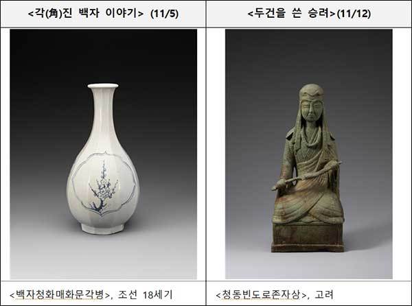 조각공예관 불교조각실에서는 불상과 보살상을 통해 <불교조각의 재질>을 살펴보고, 분청사기ㆍ백자실에서는 <각(角)진 백자 이야기>라는 주제로 17세기 조선백자의 모깎기 기법과 검소한 멋을 소개한다.