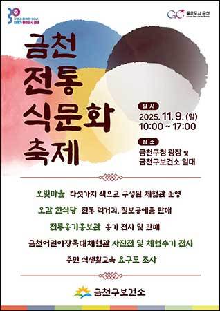 유성훈 금천구청장은 "이번 축제를 통해 전통음식의 값어치를 재조명하고 건강한 식문화의 해답을 찾아가길 기대한다"라며 "'사람 중심의 건강도시 금천'을 위해 행정적 지원을 아끼지 않아, 주민의 건강과 삶의 질을 지키겠다"라고 강조했다.