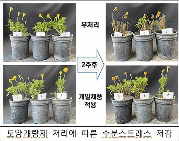 특히, 흙에 섞어주면 기존 토양 자재(펄라이트, 바크 등)보다 물을 머금는 능력(보수성)이 50% 이상 향상돼 식물의 수분 스트레스를 약 90% 줄일 수 있다.