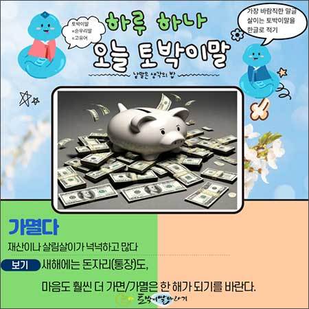 가까운 사람들과 나누는 마주이야기에도 이 말을 써보세요. 해끝을 맞아 동무에게 "새해엔 부자 되세요"라고 흔하게 말하기보다, "새해에는 돈자리(통장)도, 마음도 훨씬 더 가면/가멸은 한 해가 되기를 바란다."라고 건네는 겁니다. 듣는 이의 마음까지 넉넉하게 채워주는 말이 될 것입니다.
