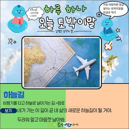 오늘 여러분과 나누고 싶은 말은 앞서 알려드린 말이자 기별 종이에서 만난 '하늘길'입니다.