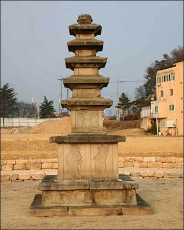 * ‘1010년 이 탑의 건립공사에 착수하여 2월 1일에 돌을 깎기 시작하였고, 또 3월 3일부터는 광군사(光軍司)의 육대차(六隊車)와 소 1,000마리, 승려와 속인 10,000명이 힘을 모아 세웠으며, 향도와 공인 등 50여인이 감독하였다. 그리하여 다음 해인 1011년 4월 8일에 완공하였다.’