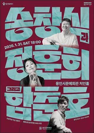 [우리문화신문=이한영 기자] 내년 1월 31일 경기 수원시 팔달구 인계로 178. ‘용인시문화예술회관 처인홀’에서는 <송창식과 정훈희 그리고 함춘호> 공연이 펼쳐진다.