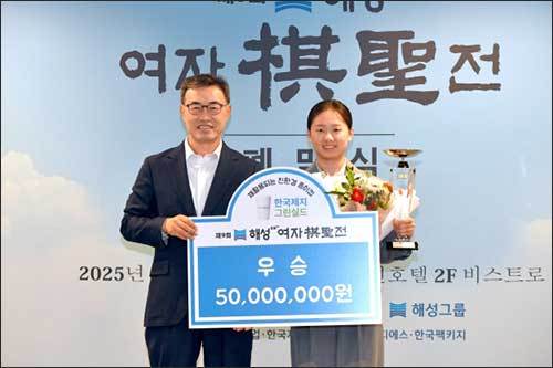 [우리문화신문=이한영 기자] 제9회 해성 여자기성전이 폐막식과 함께 아홉 번째 대회를 마쳤다. 19일 서울 강남구 힐튼 가든 인 호텔 서울 강남에서 제9회 해성 여자기성전 폐막식이 열렸다. 폐막식에는 해성그룹 단우영 부회장과 단우준 사장, 김용균 부사장, 조성래 해성산업 대표 등 해성그룹 임직원과 한국기원 양재호 사무총장, 한종진 프로기사협회장, 참가 선수 등 50여 명이 참석했다.