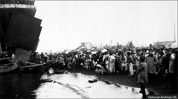 남아있는 피난민을 다 태우니 그 숫자가 1만 4천 명이었다. 그들은 화물선에 발을 디딜 곳이 있으면 어디든 올라서 있었다. 그들은 배에 올라서 서로 가슴을 맞대고 서 있거나 갑판의 기계와 제트 연료 드럼통 위에도 누워 있었다. 이 배가 남쪽으로 830킬로미터를 항해해서 12월 23일에 부산항에 도착했으나 이미 항구는 밀려드는 선박으로 댈 자리가 없어 기다리다 못해 그다음 날 거제도로 가라는 명령을 받고 다시 항해해서 성탄절인 25일에 거제도에 도착해 우리 땅으로 올라온다.